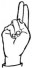 На ћирилици написано НИКОЛИНА ПАВКОВ састоји се из 14 слова [?]. Исписано ћириличном једноручном азбуком за глувонеме: